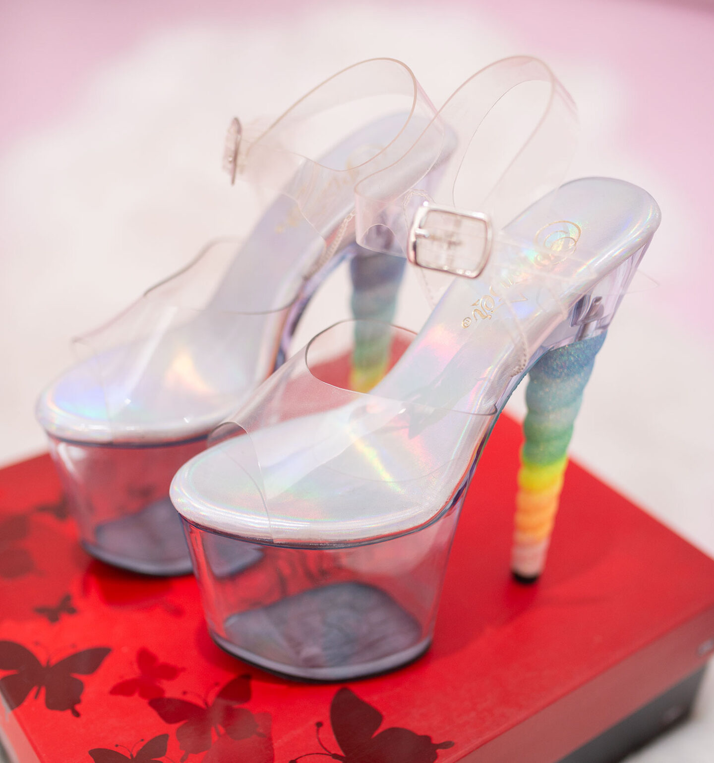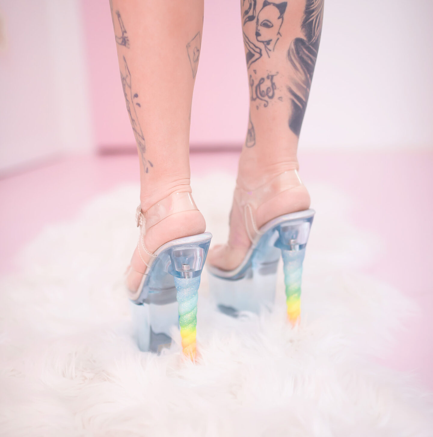 Separate yourself from the sheep and become a complete sexy rainbow unicorn instead with these stand out glitter platforms from Pleaser shoes. These highly seductive and super shimmering heels have the perfect glitter girl unicorn vibe to wow everyone.