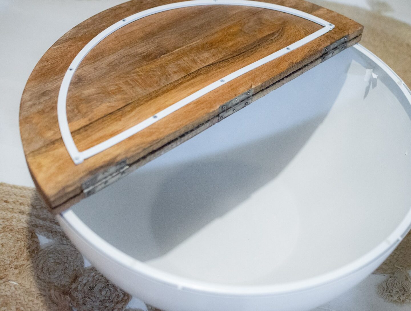 Modern yet industrial design, this vintage styled coffee table from Creation Furniture brings a light Boho feel to any living room area. From a centre feature or an interior design perspective this table has all the right qualities. The latch table top feature is a great twist to this style for storing all your bits and bobs inside. I went with storing my cushions and throws to keep them in good quality condition while Iโm not using them.