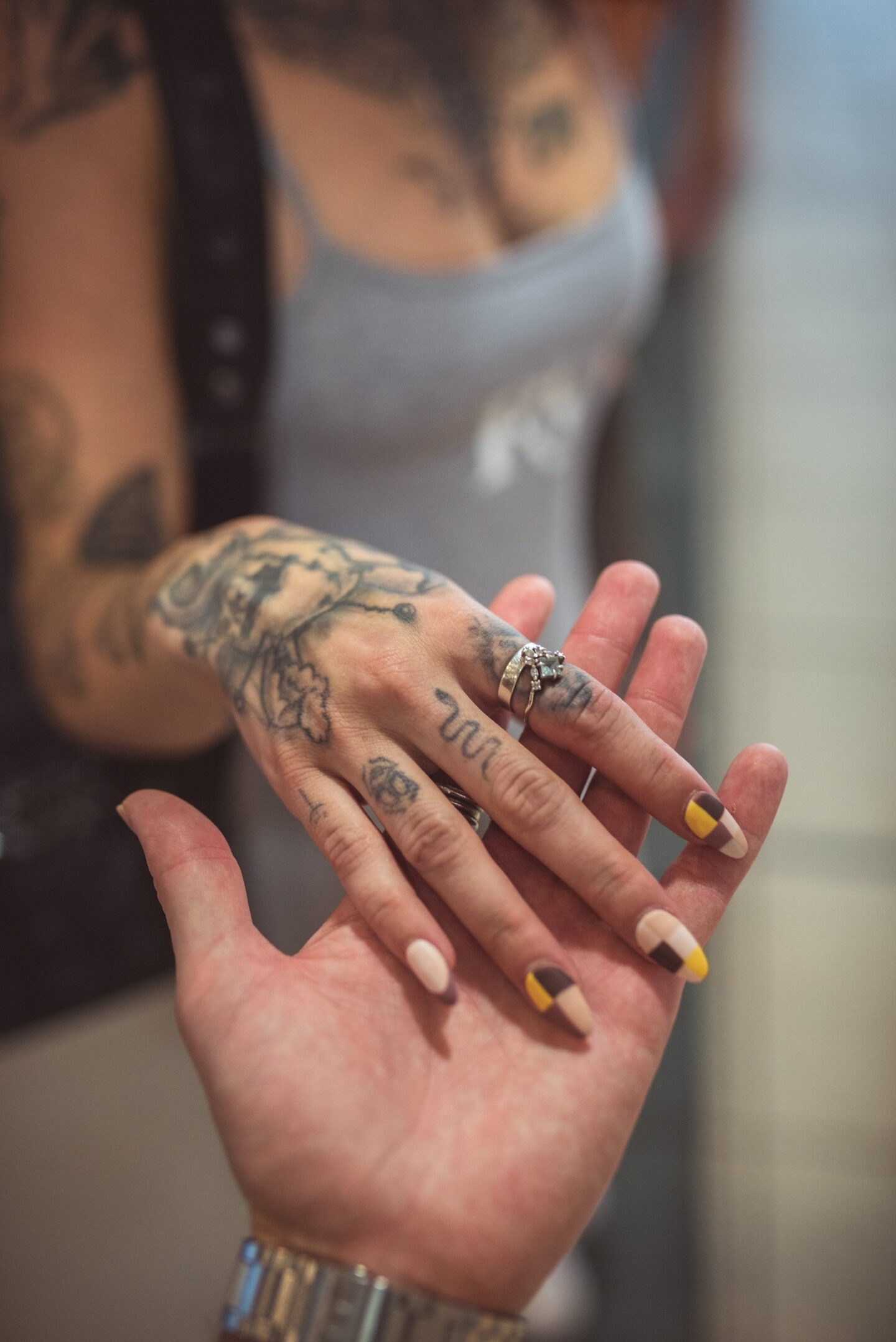 We all love the the warm tones in the autumn time, so here I chose to have a check and oval French mix done. Opaque pinks, dark browns, light tan and a splash of that gorgeous mustard colour. All clashing together in this unique set of nails. I wanted something a little different that was still on trend, so I chose check nails with a twist. Most people have a shine to finish off their nails, but I asked for a matt top to create a new dynamic for these autumn nails. I think this was the right choice for nails like this. The tones I had chosen to clash all together are made up of some of my favourite colour tones that match my wardrobe aesthetic.