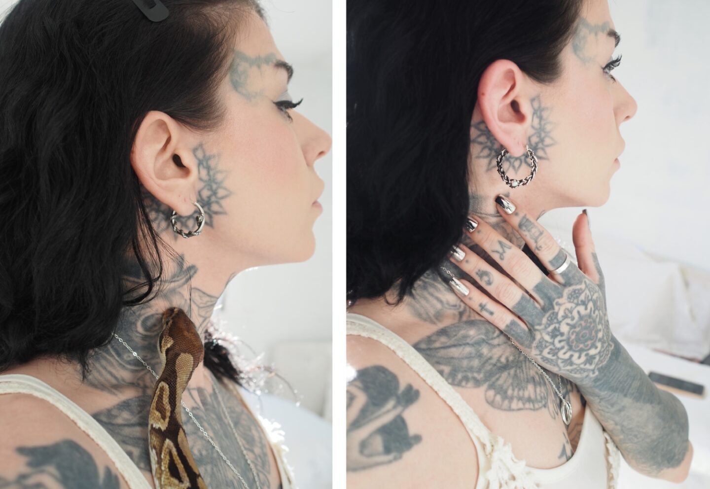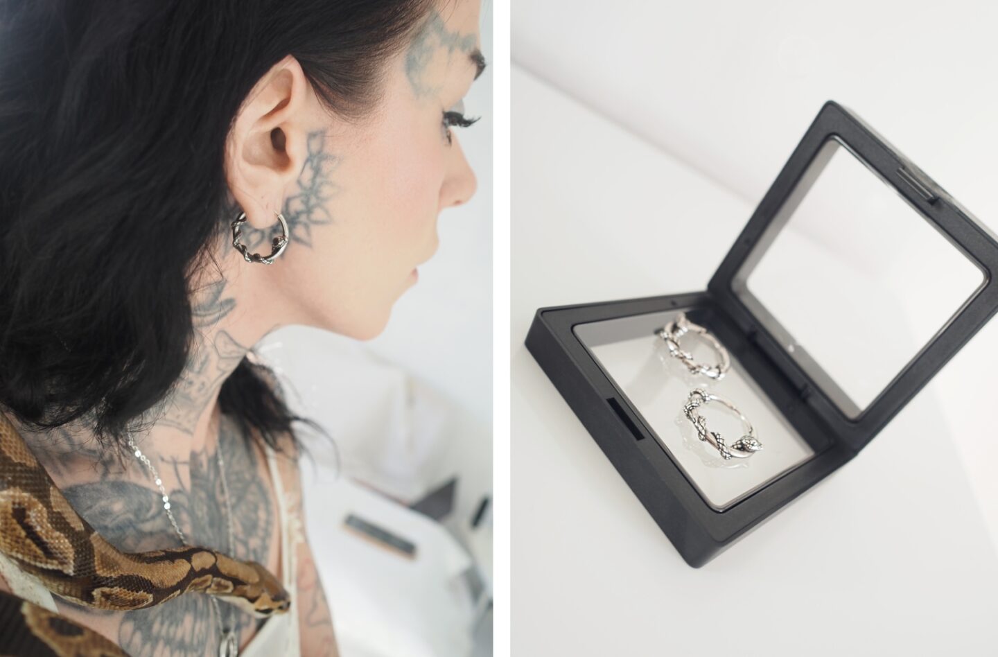 This piece is more than an accessory to me. I have such a love for my snakes and a deep-rooted connection to them. Itโs a statement for me. I want to showcase that when wearing these Rebirth hooped earrings. The snake motif complements edgy, tattooed aesthetics while appealing to those drawn to symbolism and snake-like unique designs. The earrings when worn transform you like the snake transforms and sheds leasing a new confidence and charisma, perfect for you if you are looking to make a bold impression and shed your skin to transform your fashion aesthetic.